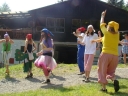 Ráno nás opět vítalo nádherné sluníčko. Ani se nám nechtělo z postelí. Dnes jsme viděli rytíře Brtníka a jeho kouzlo, které smí použít jednou za sto let. Z lesa vylezli barevní skřítci, kteří nás odvedli na stanoviště, kde jsme pod jejich vedením zatloukali hřebíky, řezali dřevo na oheň, hledali diamanty v pískovém beachdole, vyráběli ozdoby ze slámy. Společně jsme vše odnesli na hrad Brtník,kde nás rytíř Brtník z Brtníku přivítal a poděkoval za dary. Rozhodl, že ve dne je hrad náš a v noci jeho.
