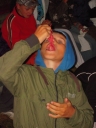 Potkali jsme našeho učitele a ten nám vyprávěl o hradu, kde si jako malý kluk hrál. Děsně se nám to líbilo, a tak jsme rozhodli, že se tam půjdeme rovnou podívat. Všude byla tma. Když jsme tam přišli, Jenda nám řekl svůj plán. Abychom zkoušku složili, měli jsme se jít podepsat do hladomorny.Tonda se začal strašně bát, tak jako náhradní úkol musel sníst žížalu. Týjo, to bylo hustý, tu žížalu skoro snědl! Pepa ale říkal, že když sníš žížalu, tak to není známka odvahy, ale toho, že jsi čuně. Dostala jsem do ruky křídu a šla jsem přískokem vpřed. Už se podepisuji a v tom slyším: "Vy cizáci, zmizte," tak jsem vzala nohy na ramena. Vaškovi ale zdřevěněly nohy, tak ho Jenda musel poponést.Jenda s Vaškem na zádech běžel z kopce a volali: "Straší, straší, v naší ruině straší."