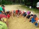 Ráno nás opět vítalo nádherné sluníčko. Ani se nám nechtělo z postelí. Dnes jsme viděli rytíře Brtníka a jeho kouzlo, které smí použít jednou za sto let. Z lesa vylezli barevní skřítci, kteří nás odvedli na stanoviště, kde jsme pod jejich vedením zatloukali hřebíky, řezali dřevo na oheň, hledali diamanty v pískovém beachdole, vyráběli ozdoby ze slámy. Společně jsme vše odnesli na hrad Brtník,kde nás rytíř Brtník z Brtníku přivítal a poděkoval za dary. Rozhodl, že ve dne je hrad náš a v noci jeho.