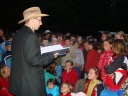 Pan učitel vyčetl z knihy pověstí, jak přivolat duchy hradu. Dle pokynů děti utvořily 3 společné kruhy- nejmenší oddíly udělaly první kruh, starší děti prostřední, nejstarší děti spojily ruce do největšího kruhu. Po kouzelném zaříkadle se objevila Bílá paní. Společně s učitelem ji děti pokládaly otázky, aby o ní něco zjistily. Prý hlavní roli u ní hrála láska k Brtníkovi.Cítí se osaměle, a zná od mala malou holčičku Leontýnku. Objevila se Leontýnka, která začala rozdávat dětem na dobrou noc kopretiny.