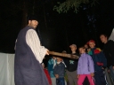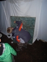 Potkali jsme našeho učitele a ten nám vyprávěl o hradu, kde si jako malý kluk hrál. Děsně se nám to líbilo, a tak jsme rozhodli, že se tam půjdeme rovnou podívat. Všude byla tma. Když jsme tam přišli, Jenda nám řekl svůj plán. Abychom zkoušku složili, měli jsme se jít podepsat do hladomorny.Tonda se začal strašně bát, tak jako náhradní úkol musel sníst žížalu. Týjo, to bylo hustý, tu žížalu skoro snědl! Pepa ale říkal, že když sníš žížalu, tak to není známka odvahy, ale toho, že jsi čuně. Dostala jsem do ruky křídu a šla jsem přískokem vpřed. Už se podepisuji a v tom slyším: "Vy cizáci, zmizte," tak jsem vzala nohy na ramena. Vaškovi ale zdřevěněly nohy, tak ho Jenda musel poponést.Jenda s Vaškem na zádech běžel z kopce a volali: "Straší, straší, v naší ruině straší."